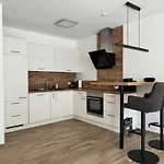 The apartment provides tea and coffee making equipment and an equipped kitchenette with a microwave oven, a fridge, and kitchenware.