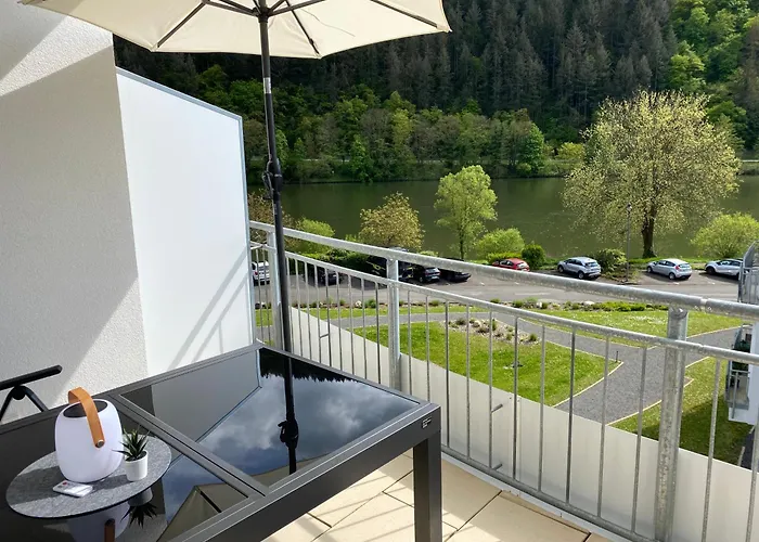 The spacious 90 m^2 Neu!!! Ferienwohnung Mosel 106,5 Traben-Trarbach overlooks the garden and is situated approximately a 5-minute ride from Underground Traben-Trarbach. Buddha-Museum is within walking distance of the 1-bedroom apartment and Hahn airport is approximately 25 minutes away by car.